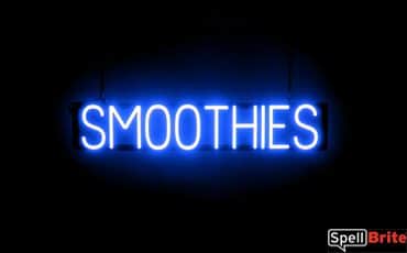 Need a Smoothies sign for your business? SpellBrite’s ultra-bright blue LED Smoothies sign has the striking appearance of traditional neon signs. However, SpellBrite lasts longer, shines brighter, and costs less than neon. Plus, our signs are guaranteed to attract customers and increase sales or your money back.