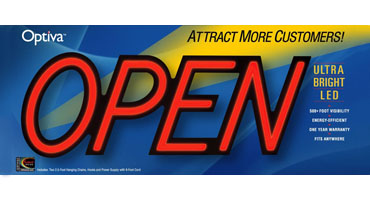 - One of the brightest LED OPEN signs on the market today. With its high-end appearance, smooth, even glow, and very reasonable price, this OPEN sign attracts and invites more customers to your location.